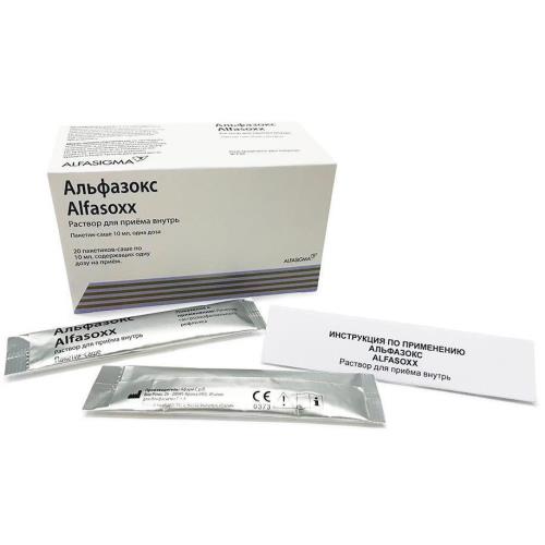 Наличие в составе Альфазокс компонента «Полоксамер 407», обладающего высокой способностью к биоадгезии, обеспечивает надёжный контакт комплекса «гиалуроновая кислота - хондроитина сульфат» с поверхностью стенки пищевода, способствуя её защите от агрессивного воздействия соляной кислоты желудка. Хондроитина сульфат также способствует восстановлению слизистой оболочки пищевода и желудка. Альфазокс способствует снижению воспаления и заживлению эрозий слизистой при эзофагитах и гастродуоденитах.Показания к применению