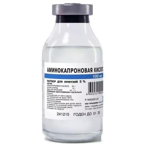 При необходимости достижения быстрого эффекта (острая гипофибриногенемия) вводят внутривенно капельно до 100 мл стерильного 5% раствора на изотоническом растворе натрия хлорида со скоростью 50-60 капель в минуту. В течение 1-го часа вводят в дозе 4-5 г, в случае продолжающегося кровотечения - до его полной остановки по 1 г каждый час, но не более 8 часов. При продолжающемся кровотечении инфузии повторяют каждые 4 ч.