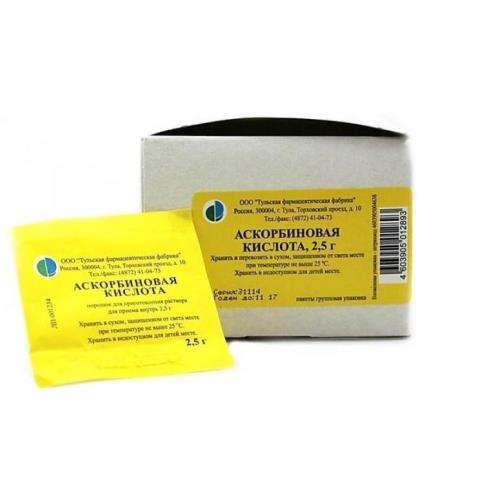 Состав на одну упаковку: Аскорбиновая кислота - 2,5 гЛекарственная форма
