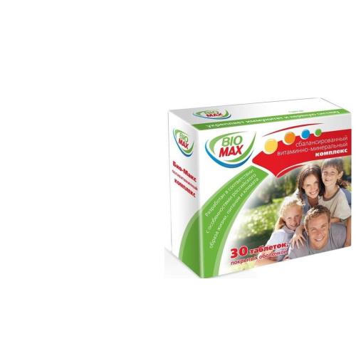 Био-Макс является сбалансированным витаминно-минеральным комплексом, содержащим 12 жизненноважных витаминов и 8 минералов и микроэлементов. Точно подобранная комбинация активных компонентов комплекса разработана в соответствии с особенностями российского образа жизни, питания, климата. Комплекс необходим для поддержания энергетических резервов организма; метаболизма углеводов, липидов, нуклеиновых кислот и белков; синтеза коллагена соединительной ткани и нейромедиаторов. Комплекс укрепляет защитные силы организма и способствует нормальному функционированию нервной системы человека, повышает устойчивость к нагрузкам, обеспечивает развитие и дифференциацию тканей, способствует заживлению ран, улучшает состояние кожи, волос, костной ткани, зубов, десен, кровеносных сосудов. Комплекс оказывает антиоксидантное действие.Показания к применению