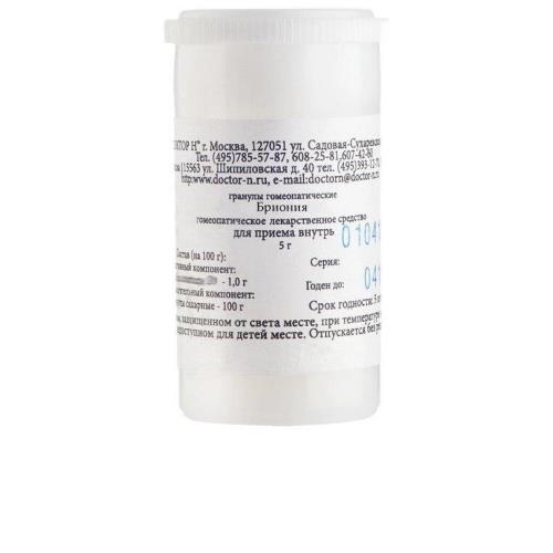 Состав (на 100 г): активный компонент: Bryonia (Бриония) C30 - 1,0 г вспомогательный компонент: гранулы сахарные - 100 гЛекарственная форма