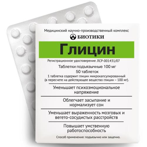 Глицин является регулятором обмена веществ, нормализует и активирует процессы защитного торможения в центральной нервной системе, уменьшает психоэмоциональное напряжение, повышает умственную работоспособность. Глицин обладает глицин- и ГАМК-ергическим, альфа1-адреноблокирующим, антиоксидантным, антитоксическим действием, регулирует деятельность глутаматных (NMDA) рецепторов, за счет чего препарат способен: