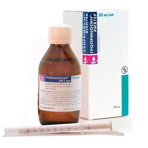 Рекомендуемая суточная доза для взрослых и пожилых пациентов, а также детей 3 лет и старше (масса тела больше 15-20 кг) составляет 50 мг/кг массы тела в 3-4 прима. 1 мл препарата Гроприносин-Рихтер содержит 50 мг инозина пранобекса.