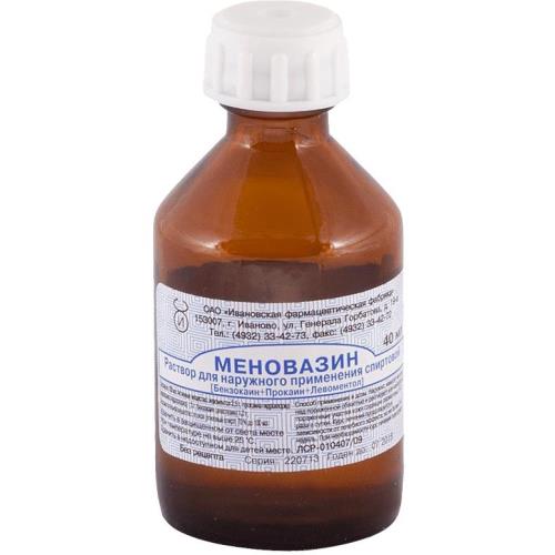 активные вещества: левоментол - 2,5 г, прокаина гидрохлорид (новокаина гидрохлорид) - 1,0 г, бензокаин (анестезин) - 1,0 г, вспомогательные вещества: этанол (этиловый спирт) 70 % до 100 мл