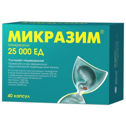Доза препарата подбирается индивидуально в зависимости от возраста, степени выраженности симптомов и состава диеты. Подбор дозы осуществляется с помощью зарегистрированных лекарственных препаратов Микразим® 10000 ЕД и Микразим® 25000 ЕД. Капсулы принимают внутрь, запивая достаточным количеством нещелочной жидкости (вода, фруктовые соки). Если разовая доза препарата больше 1 капсулы, следует принять половину от общего количества капсул непосредственно перед приемом пищи, а другую половину - во время еды. Если разовая доза - 1 капсула, ее следует принять во время еды. При затрудненном глотании (например, у детей или пожилых людей) капсулу можно раскрыть и принимать препарат непосредственно в микрогранулах, предварительно смешав их с жидкостью или жидкой пищей (рН<5,0), не требующей пережевывания (яблочное пюре, йогурт). Размельчение или разжевывание пеллет, а также добавление их к пище с pH выше 5,5, приводит к разрушению их оболочки, защищающей от действия желудочного сока. Любая смесь микрогранул с пищей или жидкостью должна приниматься сразу же после приготовления., Допустимая доза для детей в возрасте до 13 лет - 50000 ЕД/сут.; старше 1,5 лет - 100 000 ЕД/сут. Продолжительность приема панкреатина может варьировать от нескольких дней (нарушение пищеварения) до нескольких месяцев или лет (длительная заместительная терапия). Заместительная терапия при различных видах экзокринной недостаточности поджелудочной железы. Доза подбирается индивидуально и зависит от степени выраженности внешнесекреторной недостаточности, индивидуальных пищевых привычек и возраста пациента. Стеаторея (более 15 г жира в кале в сутки). При наличии поносов, снижении массы тела и отсутствии эффекта от диетотерапии назначают 25 000 ЕД липазы при каждом приеме пищи. При необходимости и хорошей переносимости дозу повышают до 30 000 - 35 000 ЕД липазы на один прием. Дальнейшее увеличение дозы, в большинстве случаев, не улучшает результаты лечения и требует пересмотра диагноза, снижения содержания жира в рационе и/или дополнительного назначения препаратов - ингибиторов протонного насоса. При нерезко выраженной стеаторее, не сопровождающейся поносами и снижением массы тела, назначают от 10 000 ЕД до 25 000 ЕД липазы на прием. Муковисцидоз. Начальная расчетная доза для детей младше 4-х лет - 1 000 ЕД липазы на килограмм массы тела при каждом кормлении, для детей старше 4-х лет - 500 ЕД липазы на килограмм массы тела при каждом приеме пищи. Дозу следует подбирать индивидуально, в зависимости от тяжести заболевания, выраженности стеатореи и нутритивного статуса. Поддерживающая доза для большинства пациентов не должна превышать 10 000 ЕД липазы на килограмм массы тела в сутки.