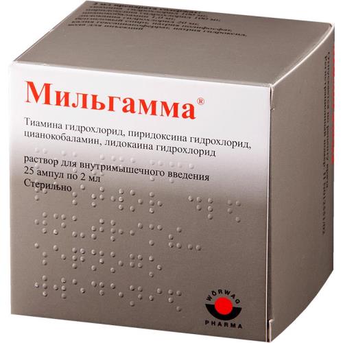 В случаях выраженного болевого синдрома для быстрого достижения высокого уровня препарата в крови лечение целесообразно начинать с 2,0 мл ежедневно в течение 5-10 дней. В дальнейшем после стихания болевого синдрома и при легких формах заболевания переходят в дальнейшем либо на терапию лекарственной формой для приема внутрь (например, препарат Мильгамма композитум), либо на более редкие инъекции (2-3 раза в неделю в течение 2-3 недель) с возможным продолжением терапии лекарственной формой для приема внутрь (например, препаратом Мильгамма композитум).