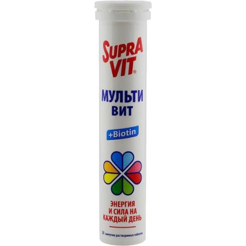 Комплекс Суправит "МультиВит" содержит комбинацию витаминов, способствующую эффективному метаболизму и производству энергии, обеспечивает нормальное функционирование иммунной системы.