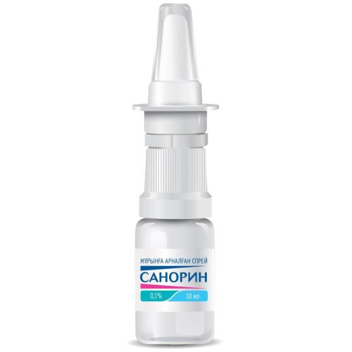 Интраназально. По 1-3 дозы препарата в каждый носовой ход 3-4 раза в сутки. При первом применении спрея рекомендуется несколько раз нажать на дозирующее устройство, пока не появится компактное облачко аэрозоля. Перед непосредственным применением снимите защитный колпачок, флакон держите в вертикальном положении, концевую часть дозирующего устройства введите в носовой ход, после чего быстро и резко нажмите на аппликатор. Непосредственно сразу после впрыска рекомендуется произвести легкий вдох носом. После применения препарата аппликатор закройте защитным колпачком. Применять кратковременно, не более 1 недели у взрослых и не более 3-х дней у детей. Если носовое дыхание облегчается, то применение препарата Санорин можно закончить раньше. Повторное применение препарата возможно через несколько дней.