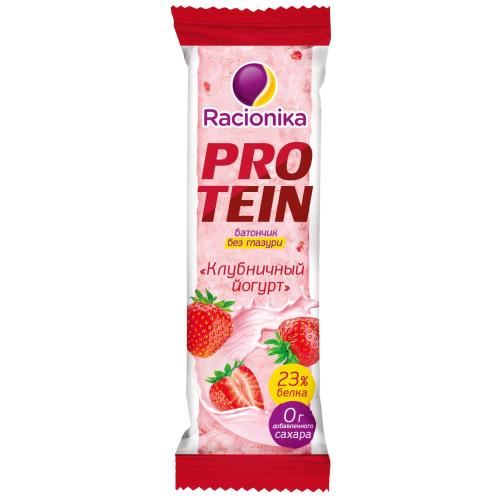 Протеиновый батончик без глазури Racionika Protein 23% "Клубничный йогурт" - вкусный и полезный перекус для тех, кто занимается спортом или хочет похудеть. Высокое содержание белка - больше 10г в батончике позволит вам легко набрать нужное суточное количество белка без вреда для фигуры.